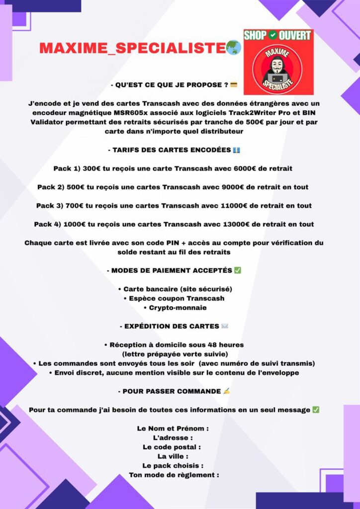 Ces cartes ne sont pas associées à un compte bancaire ou à une personne et sont donc considérées comme les cartes les plus sûres à utiliser. Le coût de ces cartes est un peu plus élevé que celui des cartes clonées, car nous avons déjà effacé une carte clonée et transféré de l'argent vers une carte prépayée. Avec cette carte, vous pourrez profiter de toutes les possibilités d'utilisation (achats en magasin et retraits) en toute sérénité.
